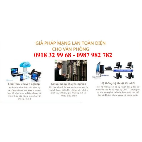 Ngoài dịch vụ thi công hệ thống mạng, Lắp đặt mạng nội bộ, chúng tôi còn cung cấp dịch vụ lắp đặt tổng đài điện thoại, lắp đặt camera, sửa chữa hệ thống camera quan sát, sửa chữa tổng đài điện thoại, thiết kế thi công mạng không dây, bảo trì sửa chữa máy tính, thiết bị văn phòng cho các doanh nghiệp, công ty, văn phòng, trường học, khách sạn... Với thiết bị đa dạng, phong phú về chủng loại và mẫu mã, chất lượng tốt nhất.
