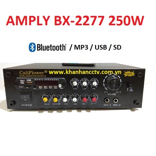 Mua Ampli tăng âm công suất 250W BX-2277 (Blustooth, thẻ nớ, USB), BX-2277 giá rẻ, chính hãng CALIFLOWER, bảo hành chính hãng, Đầy đủ phụ kiện đi kèm, tài liệu HDSD. Giao hàng COD thu tiền tận nơi, bán giá luôn rẻ và ưu đãi bạn hàng cũ, đại lý, kỹ thuật và mua số lượng.