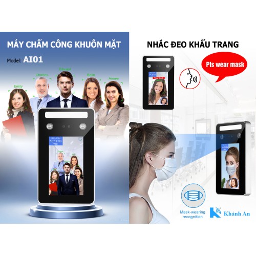 Máy chấm công khuôn mặt, thẻ từ AI01 (nhắc đeo khẩu trang)