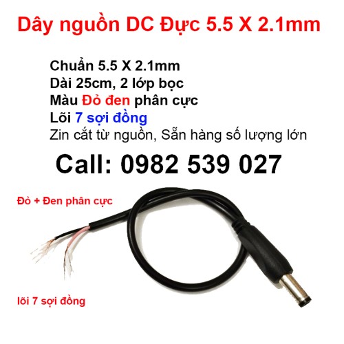 - Liên hệ kinh doanh để có bảng báo giá Dây nguồn DC Đực, chuẩn 5.5 X 2.1mm (lõi đỏ đen) mới nhất hiện tại.