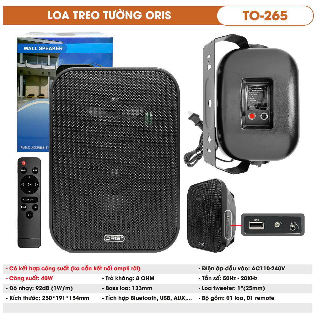 - Loa Treo Tường chính hãng Oris TO-265 công suất 40W, TO-266 công suất 60W Chuyên Dụng Cho Quán Cafe, Nhà Hàng, Salon Tóc, Viện Thẩm Mỹ, Lớp học, Hội Nghị,...