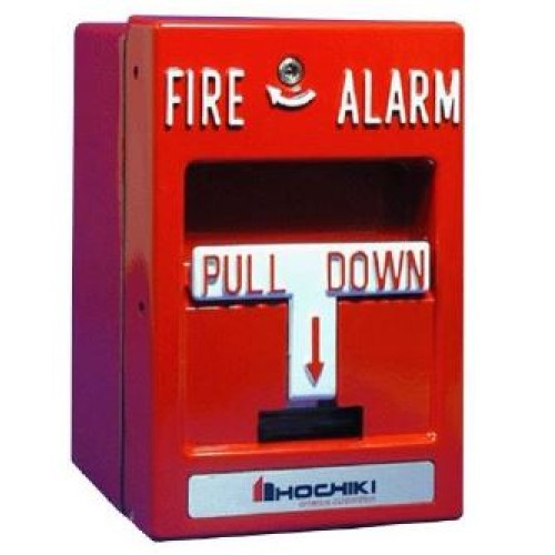 - The HPS-SA-EX/WP has a white pull down lever in its center. Pulling down the lever latches it into place. The HPS-SA-EX/WP's normally open contact switch is shorted causing an alarm on the fire initiating loop. The pull down lever can not be reset unless the correct key is inserted into the manual fire alarm box lock and the unit is opened. The latching lever can then be restored to its normal position.