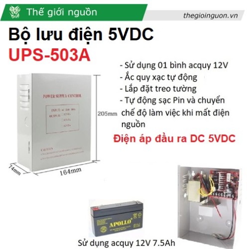 Bộ cấp nguồn lưu điện 5V 3A UPS-503A cho khóa, kiểm soát cửa, camera, modem, wifi , model UPS-503A , chính hãng Import , xứng đáng trở thành thiết bị ưa chuộng hàng đầu của mọi gia đình và các doanh nghiệp tại Việt Nam.